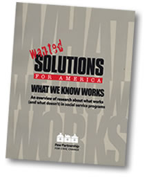 We know what works. Contrary to the popular beliefs that nothing works or that everything works to solve tough community problems, we know that some things do work. Decades of experience and research have identified strategies that are more effective than others at producing results and changing lives. However, the sheer volume of this research is overwhelming. The challenge to busy people trying to lead communities, mobilize citizens, and manage organizations is sorting through this wealth of riches for succinct and reliable information about promising solutions. What We Know Works provides a foundation of effective practices for people who need information and who need it now.